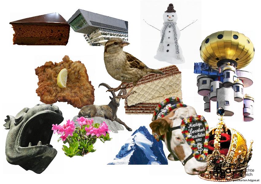 Wie sieht Österreich aus, wenn Sie es sich aus einem Baukasten zusammensetzen? Auf dieser Seite laden wir Sie ein, unterschiedliche Elemente zu einer Postkarte zu gestalten. Sie können sie sprichwörtlich auswählen, drehen, zusammensetzen und auseinandernehmen. Wenn Sie Ihr Bild gerne auch anderen zeigen möchten, speichern Sie es bitte in der Galerie. Sie können sich die Postkarte aber auch per E-Mail schicken lassen.